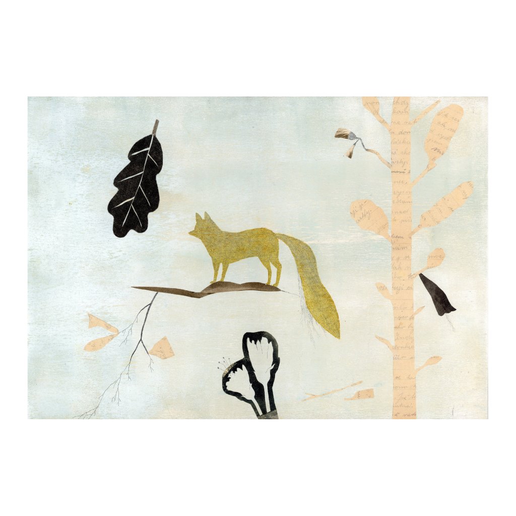 Obraz kombinuje fragmenty lesa, liščí siluety a jemnou kresbu do kompozice, která působí jako zastavený okamžik. Barevnost je tlumená, přirozená a podporuje pocit ticha a odstupu od každodenního ruchu. Dílo se dobře hodí do prostor, kde má obraz navozovat klid a lehkou poetiku.
