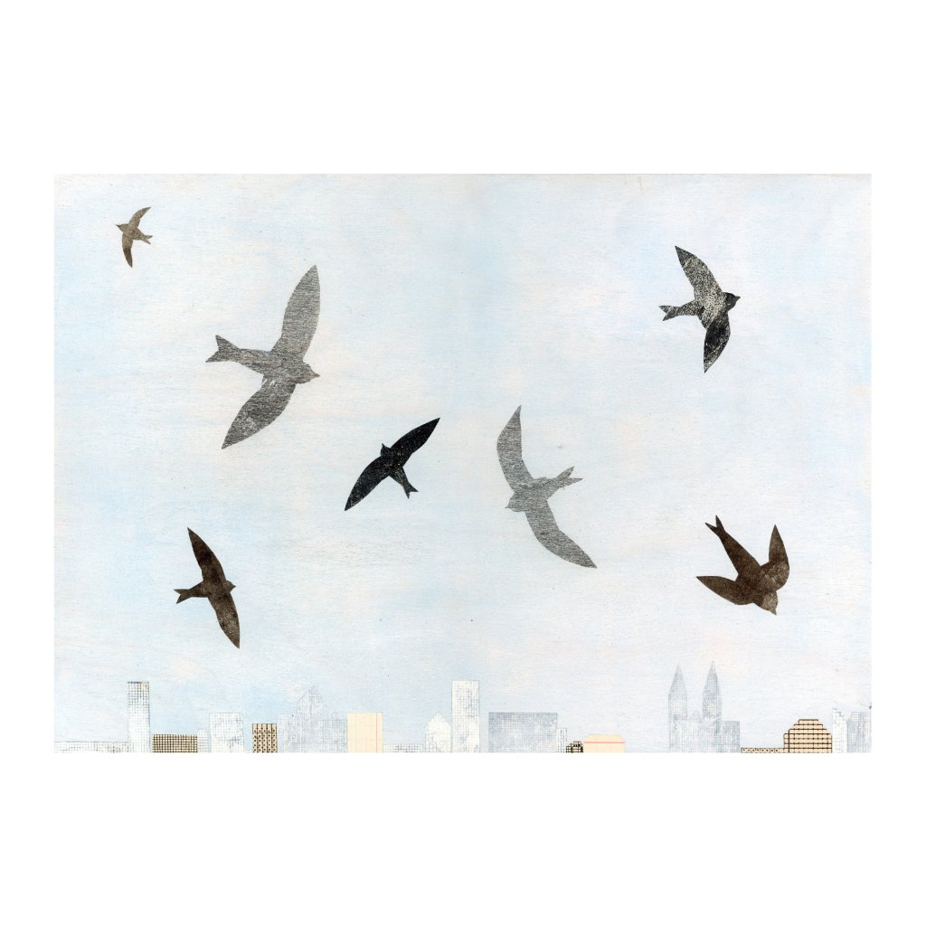 Siluety rorýsů rozprostřené na bledé obloze nad jemně naznačeným městem vytvářejí pocit vzdušnosti a nadhledu. Obraz působí svěže a optimisticky, aniž by byl prvoplánově dekorativní. Díky své lehkosti se dobře hodí do moderních interiérů, kde má prostor „dýchat“ a doplňovat architekturu bez toho, aby ji přehlušil.