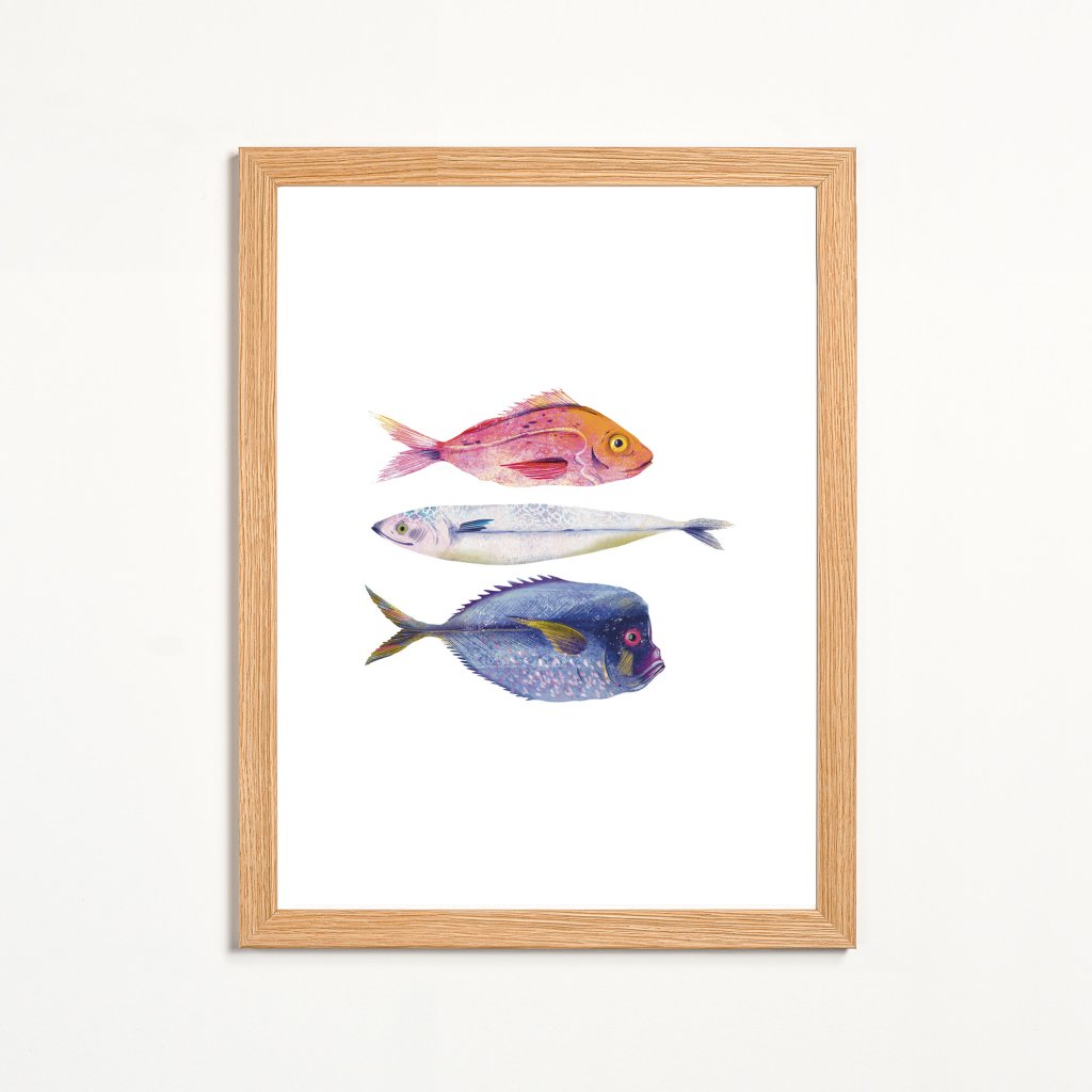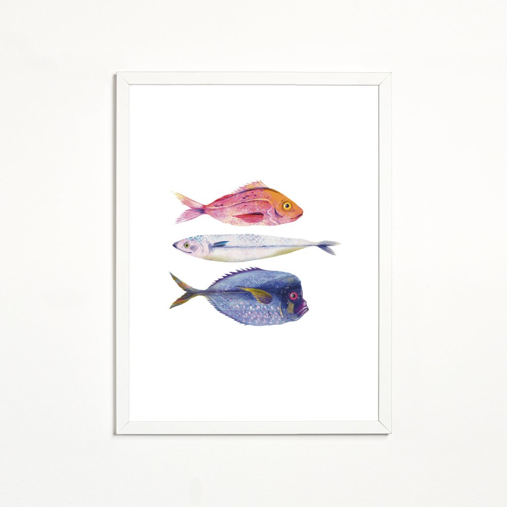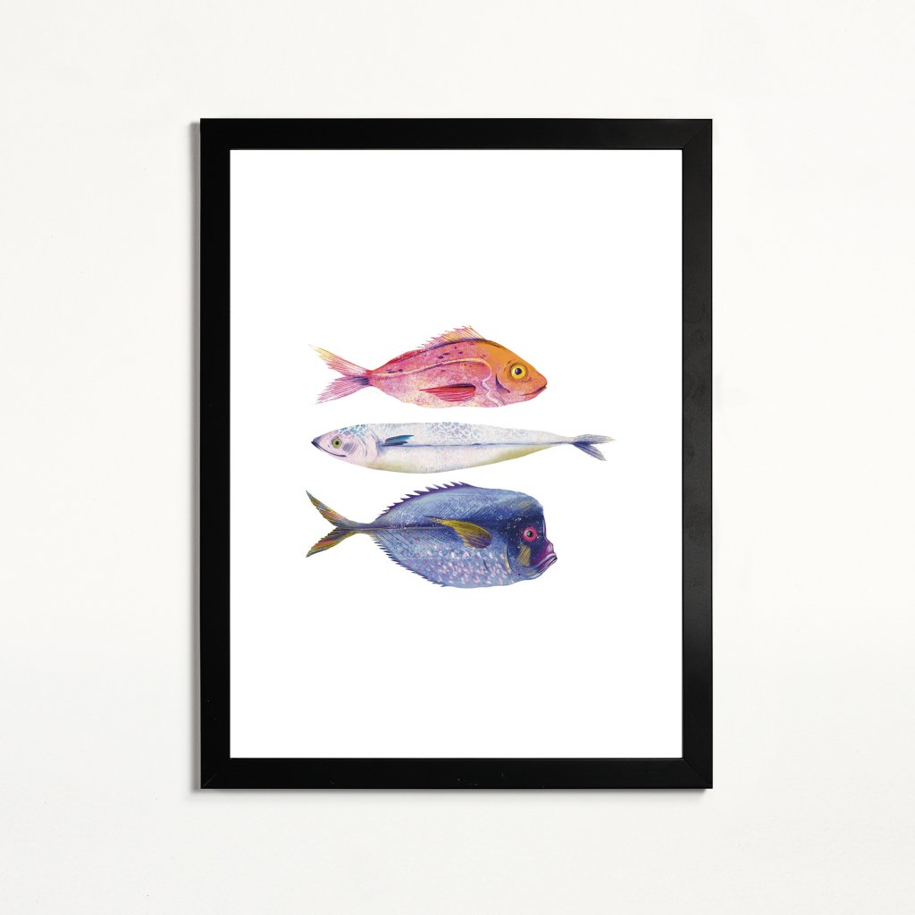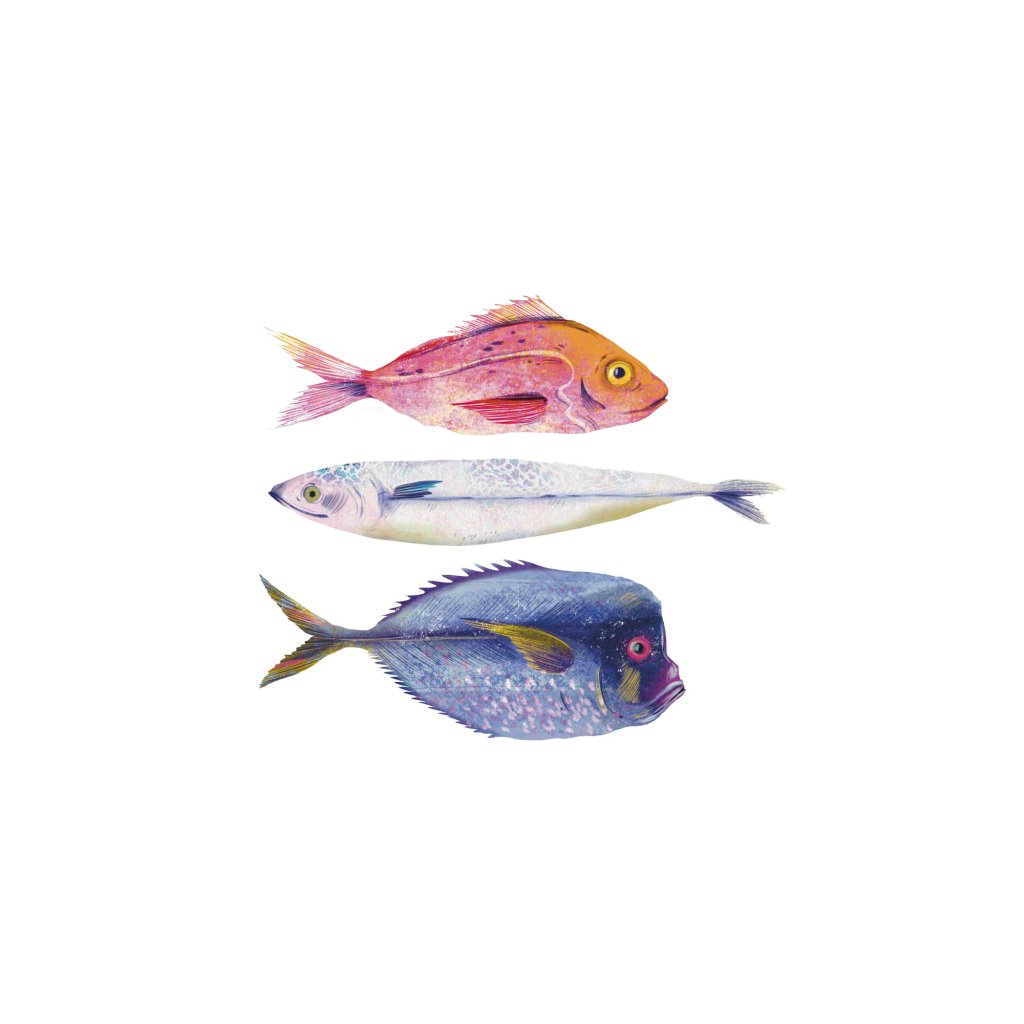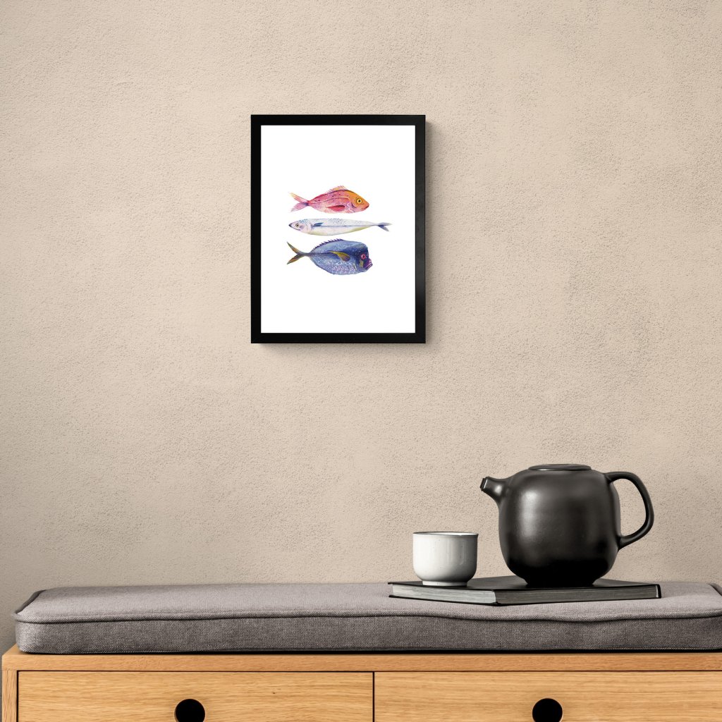 Obraz zobrazuje několik druhů ryb, zpracovaných v měkké ilustrativní stylizaci s důrazem na barvu, strukturu a detail. Každá ryba má vlastní charakter, přesto celek působí harmonicky a vyváženě. Kombinace pastelových a sytějších tónů vytváří pocit lehkosti a plynutí, který je s vodním světem přirozeně spojen. Ilustrace může být vnímána jako oslava rozmanitosti, klidu a přirozeného rytmu přírody. Hodí se do dětských pokojů, koupelen, kuchyní, rekreačních prostor nebo interiérů, kde je žádoucí hravý, ale esteticky čistý motiv.