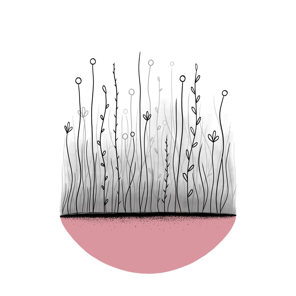 Obraz pracuje s jednoduchou kresbou rostlin, vrstvenou linkou a tlumenou barevností, která působí harmonicky a vyváženě. Kontrast mezi jemnou černou kresbou a měkkou barevnou plochou vytváří pocit stability a klidu. Dílo evokuje přírodu abstrahovanou do základních tvarů a rytmů, bez zbytečných detailů. Skvěle se hodí do světlých interiérů, ložnic, čtecích koutů nebo prostor, kde má obraz spíše zklidňovat než dominovat.