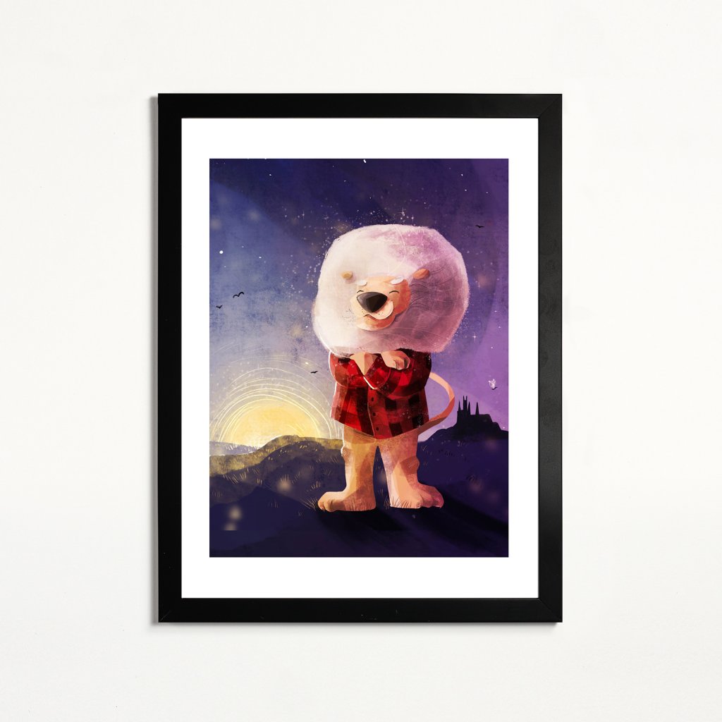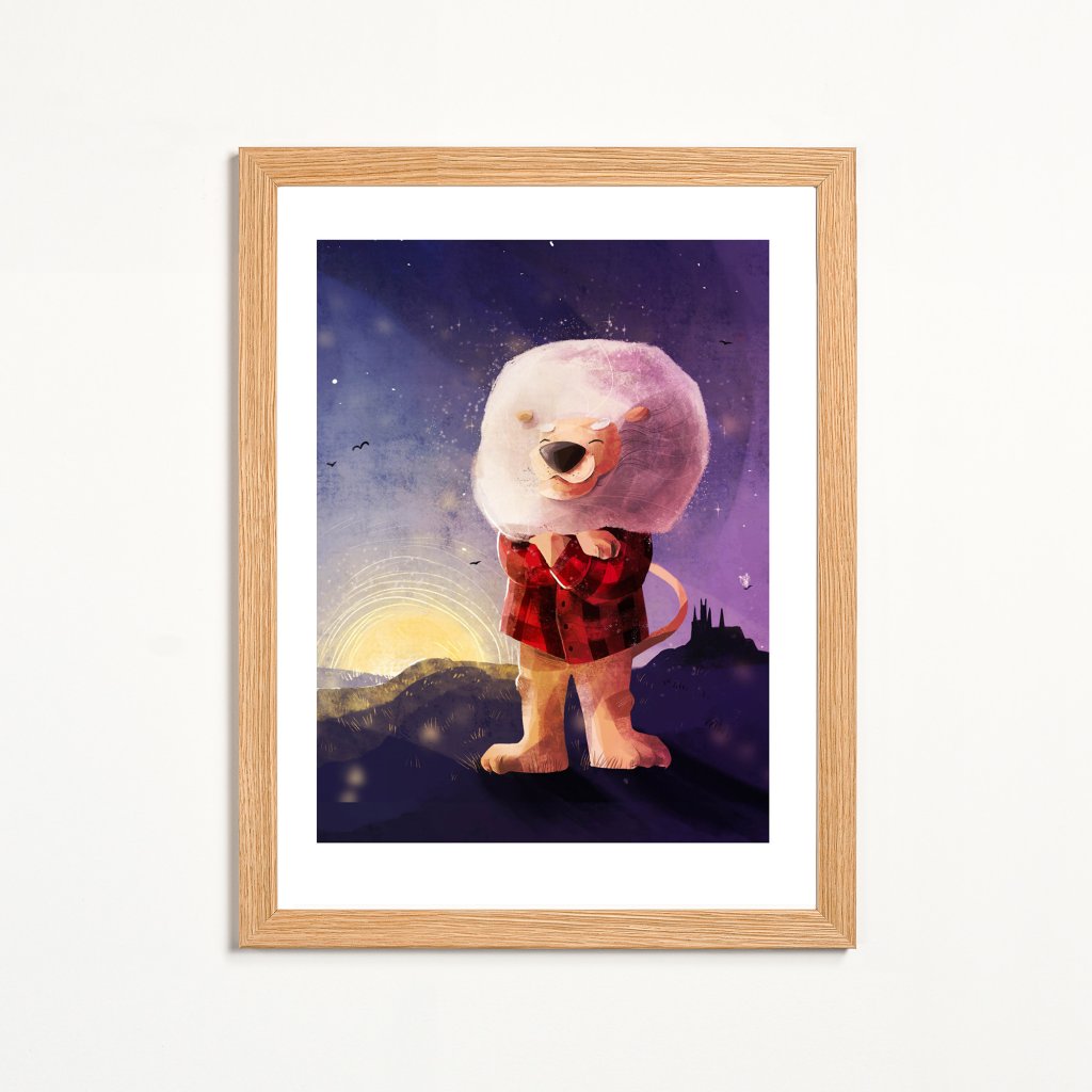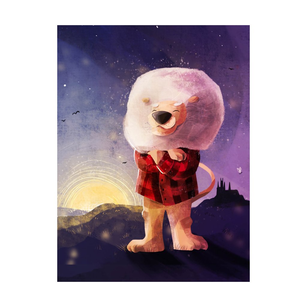 Ilustraci vévodí lev s poklidným výrazem a s majestátní bílou hřívou, oblečen ve flanelové košili. Pod ním se rozkládají české kopečky a v pozadí je rozeznatelná silueta pražského chrámu sv. Víta. Styl ilustrace je až malířský, s bohatou texturou a teplými tóny, které dodávají scéně hloubku a emoci. Lev (potažmo jeho lidský předobraz) představuje symbol vnitřní síly a rovnováhy. Dílo se hodí do obývacích pokojů, pracoven, kanceláří i uvolněnějších reprezentativních prostor.