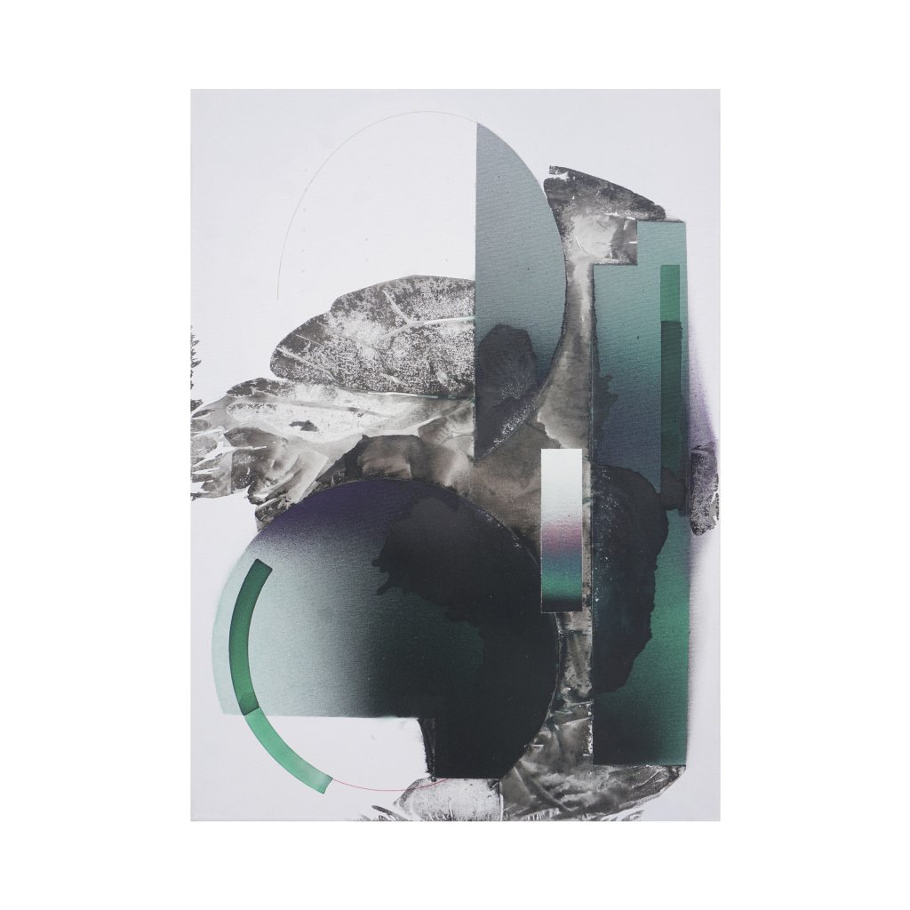 Šedé oblouky a půlměsíce se prolínají s vertikálními zelenými a fialovými liniemi, čímž vytvářejí rytmickou síť na prázdném bílém poli. Jemný přechod od tmavých k světlým tónům dodává hloubku bez chaosu. Kompozice funguje jako vizuální relaxace, kde geometrie evokuje pohyb a rovnováhu. Obraz je ideální pro moderní interiéry podporující soustředění.