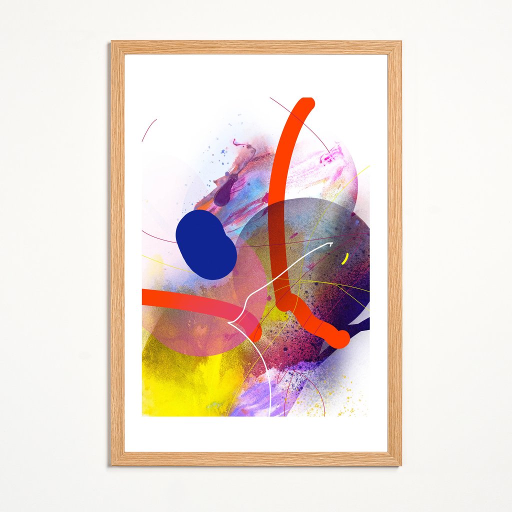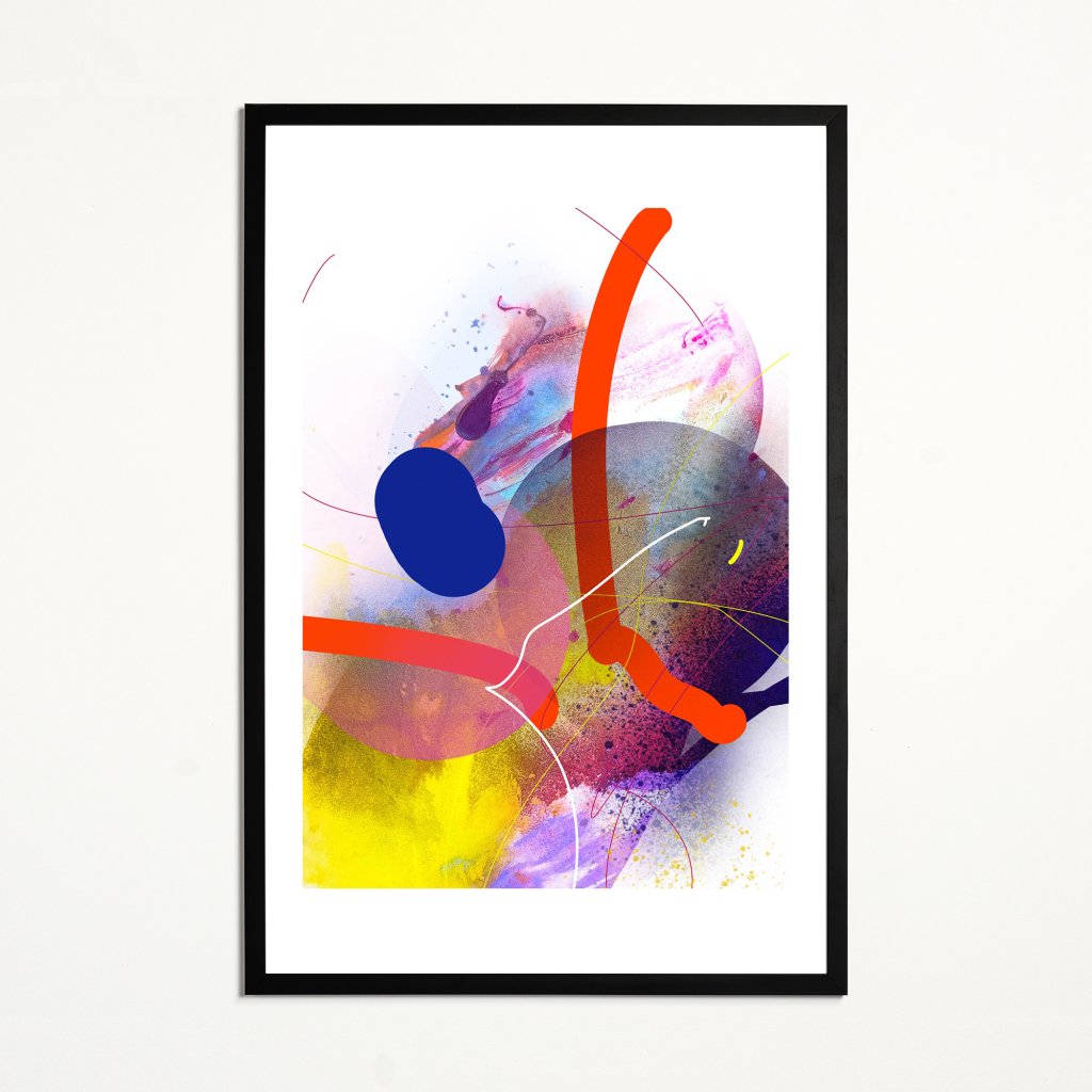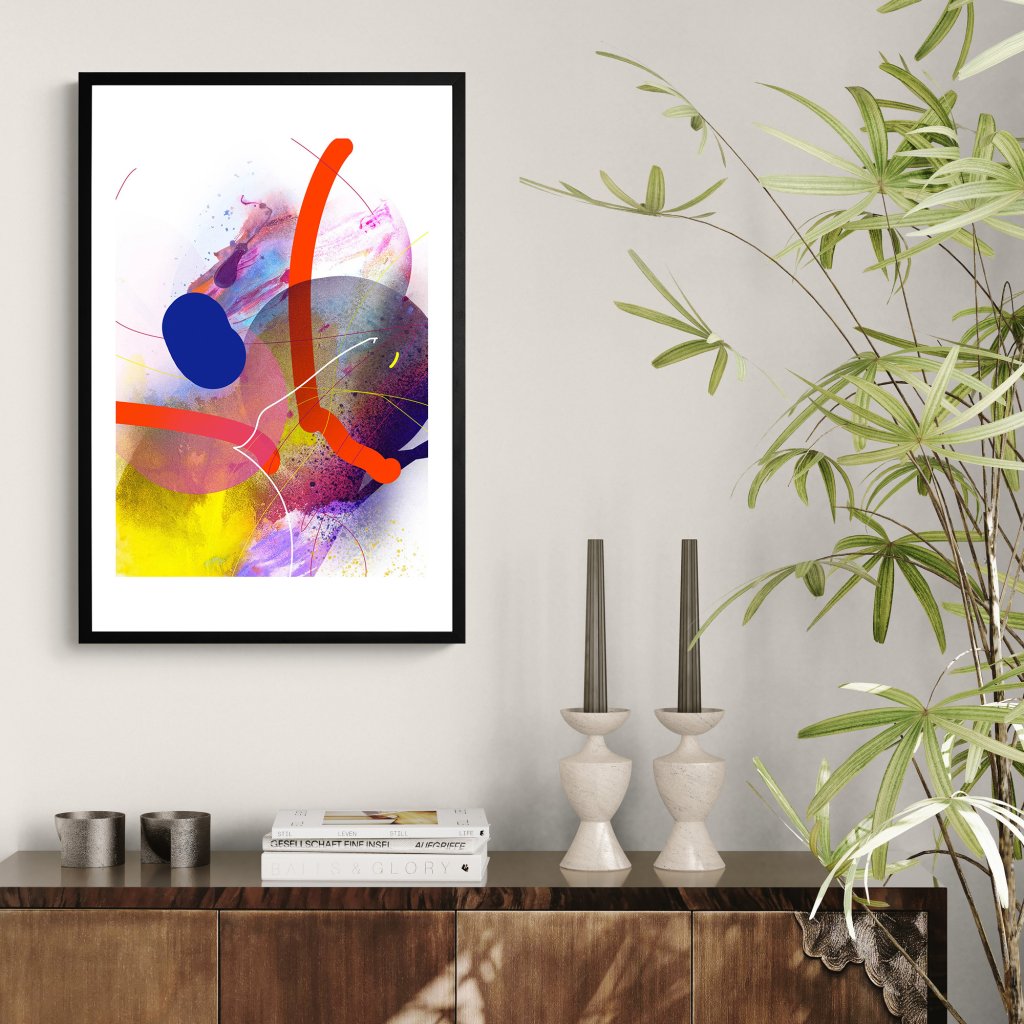 Dílo kombinuje syté barvy, průsvitné vrstvy a gestické tahy, které se vzájemně prolínají a vytvářejí pocit neustálého pohybu. Kontrast mezi měkkými tvary a ostrými liniemi dodává kompozici rytmus a hloubku. Celek působí živě, sebevědomě a otevřeně interpretaci. Hodí se do moderních interiérů, kreativních pracovních prostor nebo jako výrazný akcent do minimalistického prostředí.