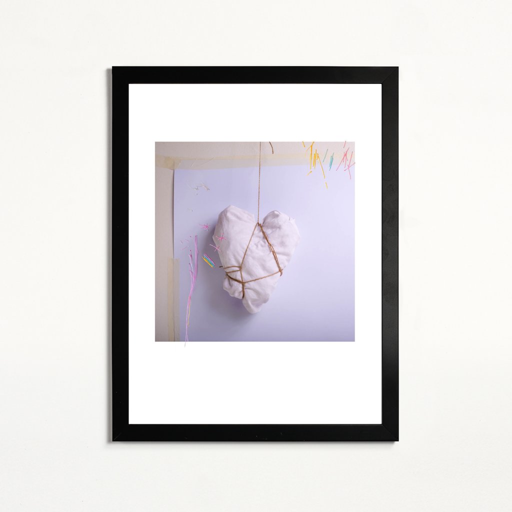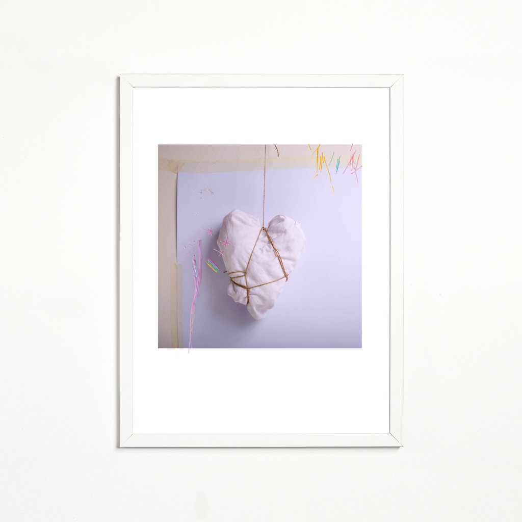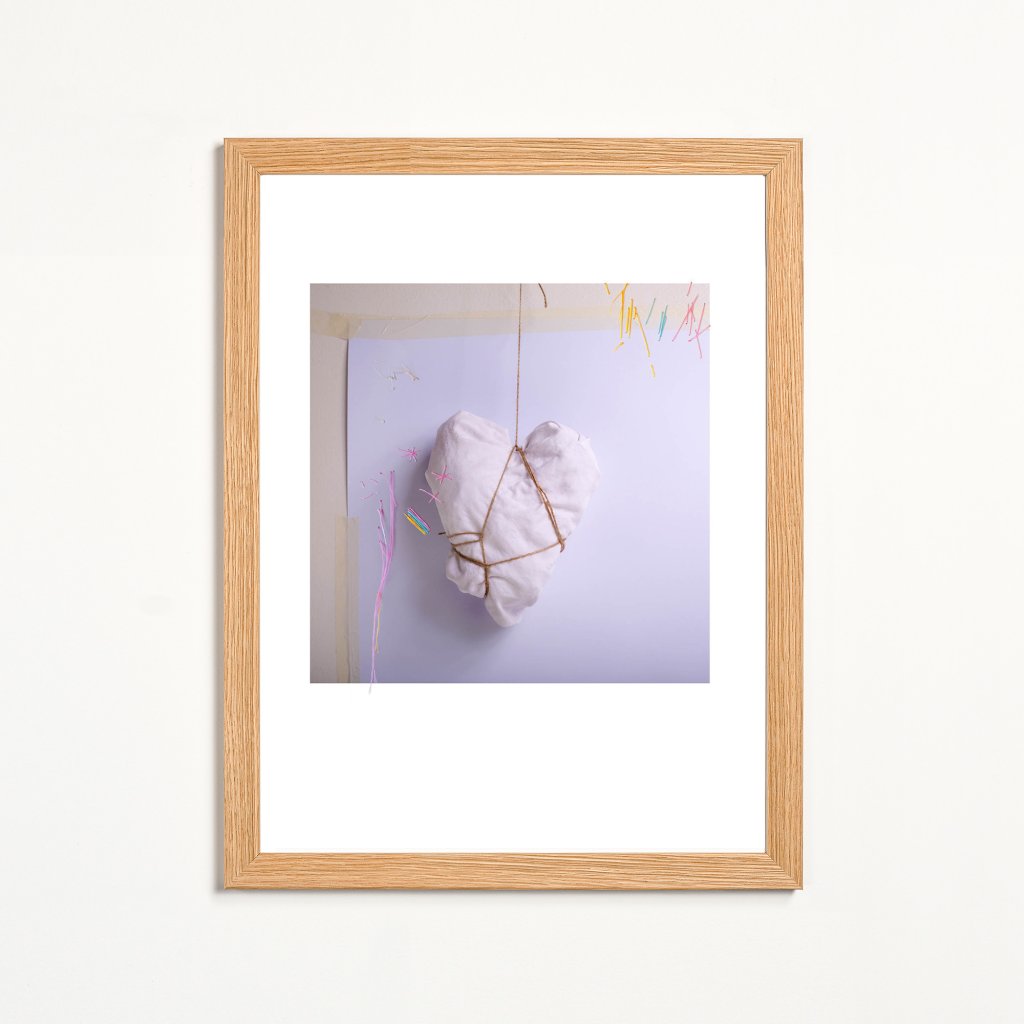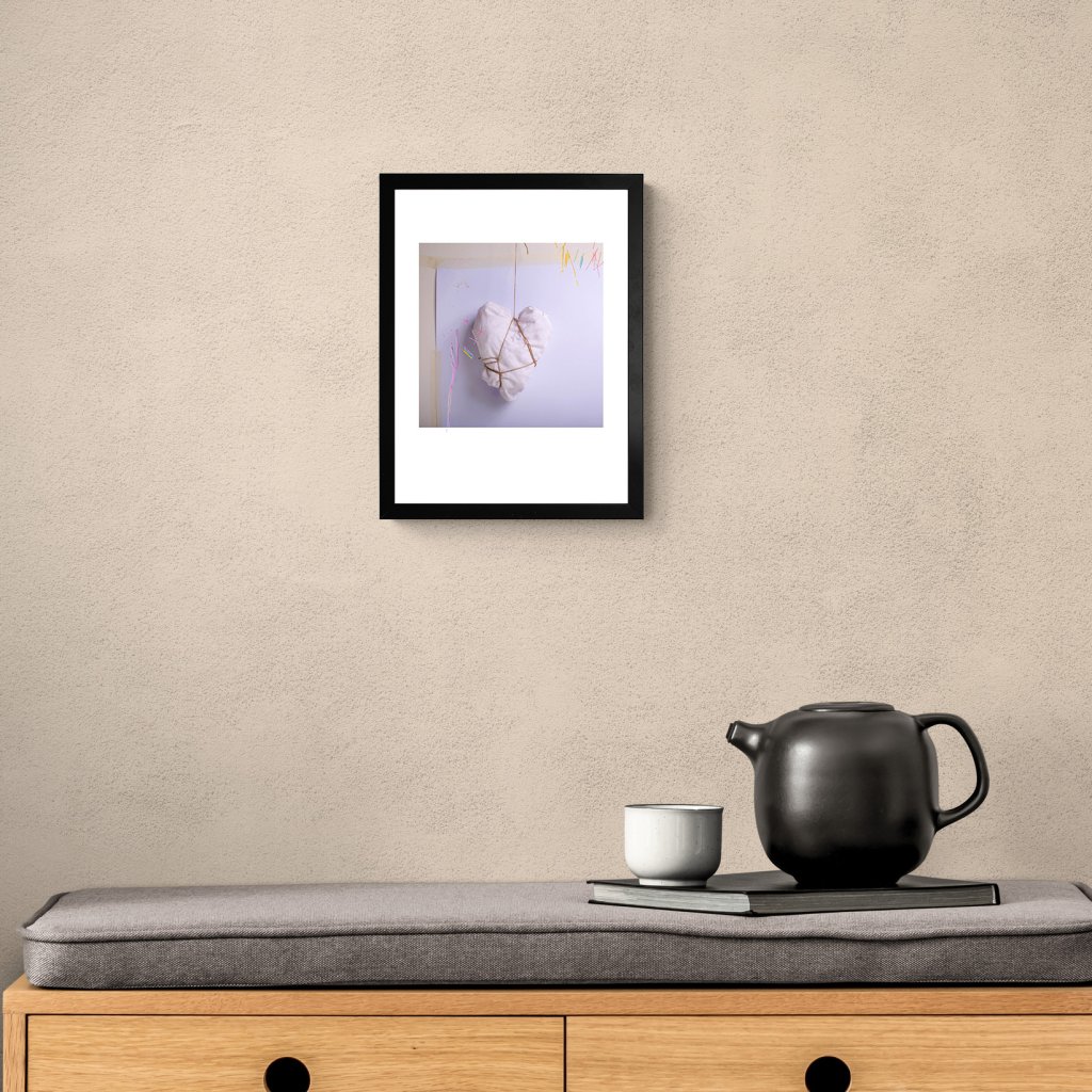 Dílo kombinuje měkké textilní srdce se surovým provázkem a subtilními barevnými akcenty, čímž vytváří napětí mezi ochranou a svázaností. Působí intimně a tiše, ale zároveň nese silný emocionální podtext. Minimalistická kompozice dává vyniknout materiálu a tvaru, hodí se do ložnic, čtecích koutů nebo interiérů, které pracují s osobními příběhy a emocemi.