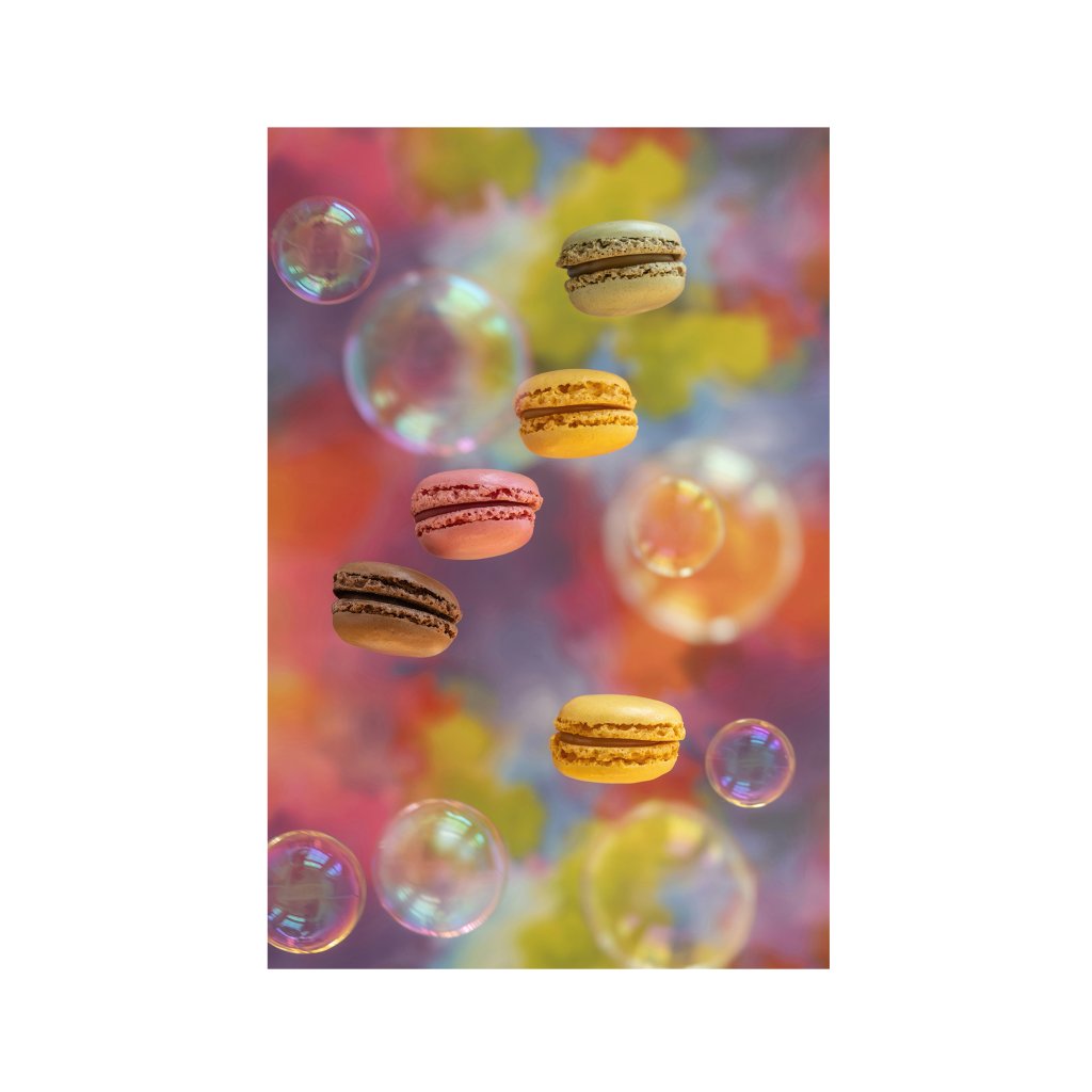 Kompozice fotky pracuje s iluzí levitace a vrstvením barev, které evokují pohyb a energii. Sladké tvary se vznášejí v prostoru, čímž vzniká pocit lehkosti a uvolnění. Obraz působí optimisticky a přátelsky, aniž by sklouzl k laciné dekorativnosti. Skvěle zapadne do kaváren, cukráren a všech interiérů, které si dovolí trochu hravosti.