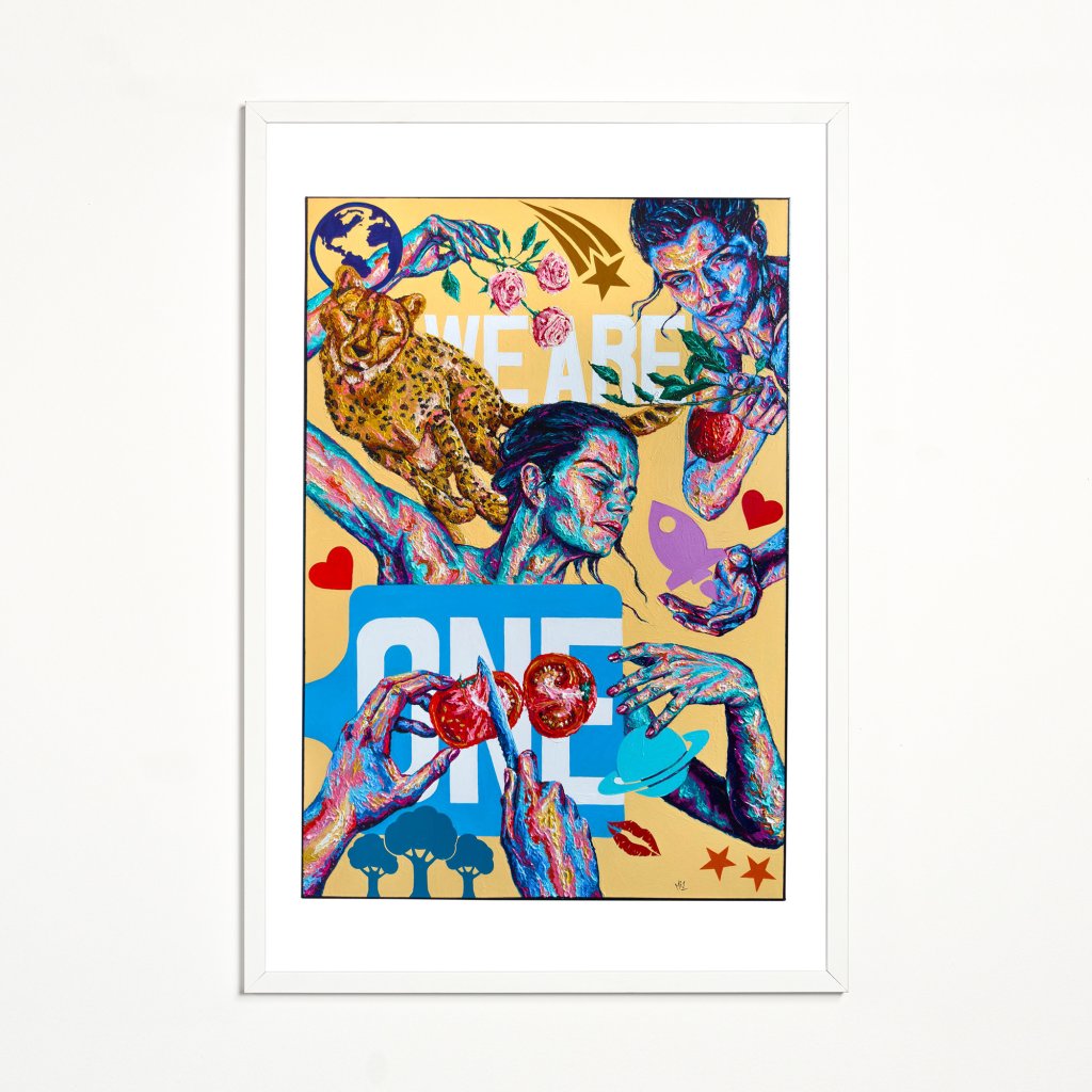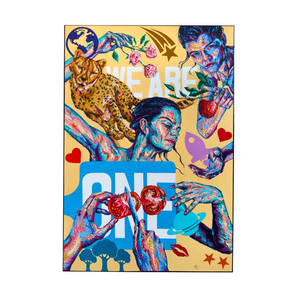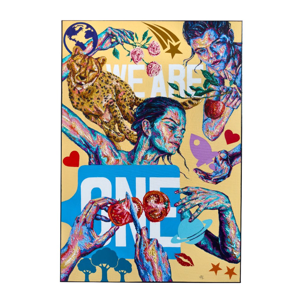 Figury, symboly a barevné vrstvy působí jako koláž lidských emocí a vztahů. Jednotlivé motivy se prolínají a navazují, čímž vytvářejí pocit celku, který je větší než jeho části. Obraz pracuje s myšlenkou sounáležitosti – ne jako ideálem, ale jako realitou plnou napětí i harmonie. Dílo má osobitý charakter a hodí se do prostor, kde má umění fungovat jako výrazný a jedinečný prvek.
