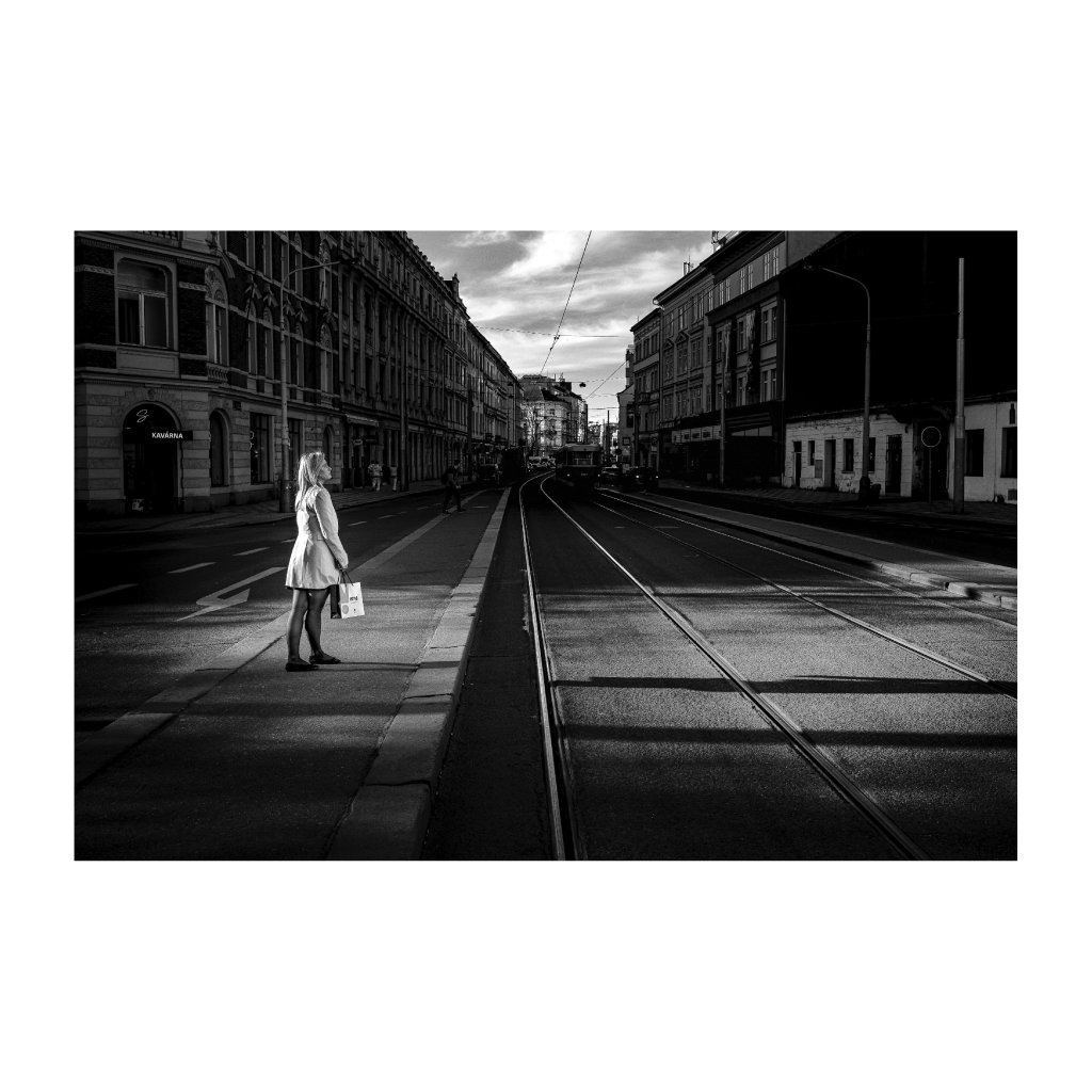 Fotografie pracuje s hlubokou perspektivou ulice a výrazným kontrastem světla a stínu. Žena působí poměrně drobně vůči architektuře, která ji obklopuje. Obraz vyvolává pocit zastavení v proudu města a jemné nejistoty, co přinese dnešní den. Silně rezonuje v interiérech, které ocení příběh a ticho mezi řádky.