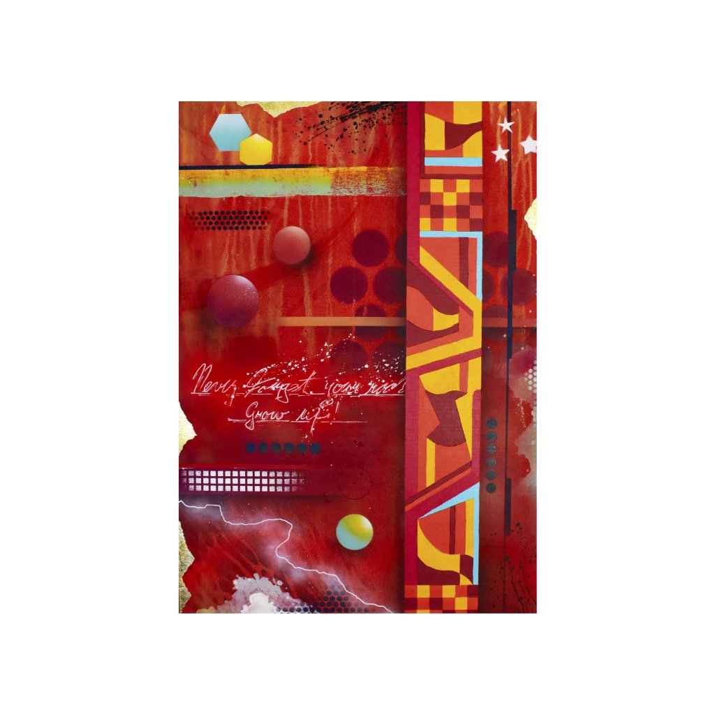 Obraz pracuje s vrstvením barevných ploch, grafických symbolů a gestických stop bez konkrétní figurace. Název sice naznačuje portrét, spíše však vidíme náladu, charakter nebo energii, kterou dílo nese. Kontrastní barvy a dynamická struktura vytvářejí pocit pohybu a současnosti, který dobře vynikne v obývacích pokojích, ateliérech nebo kreativních kancelářích.