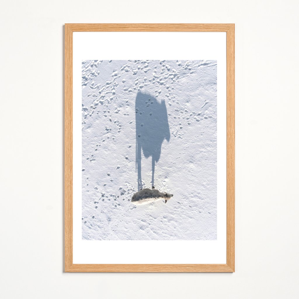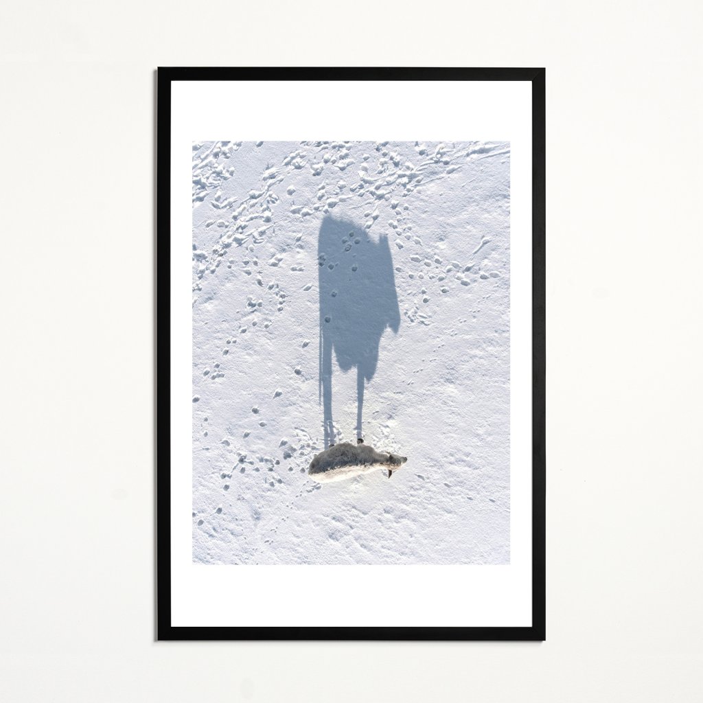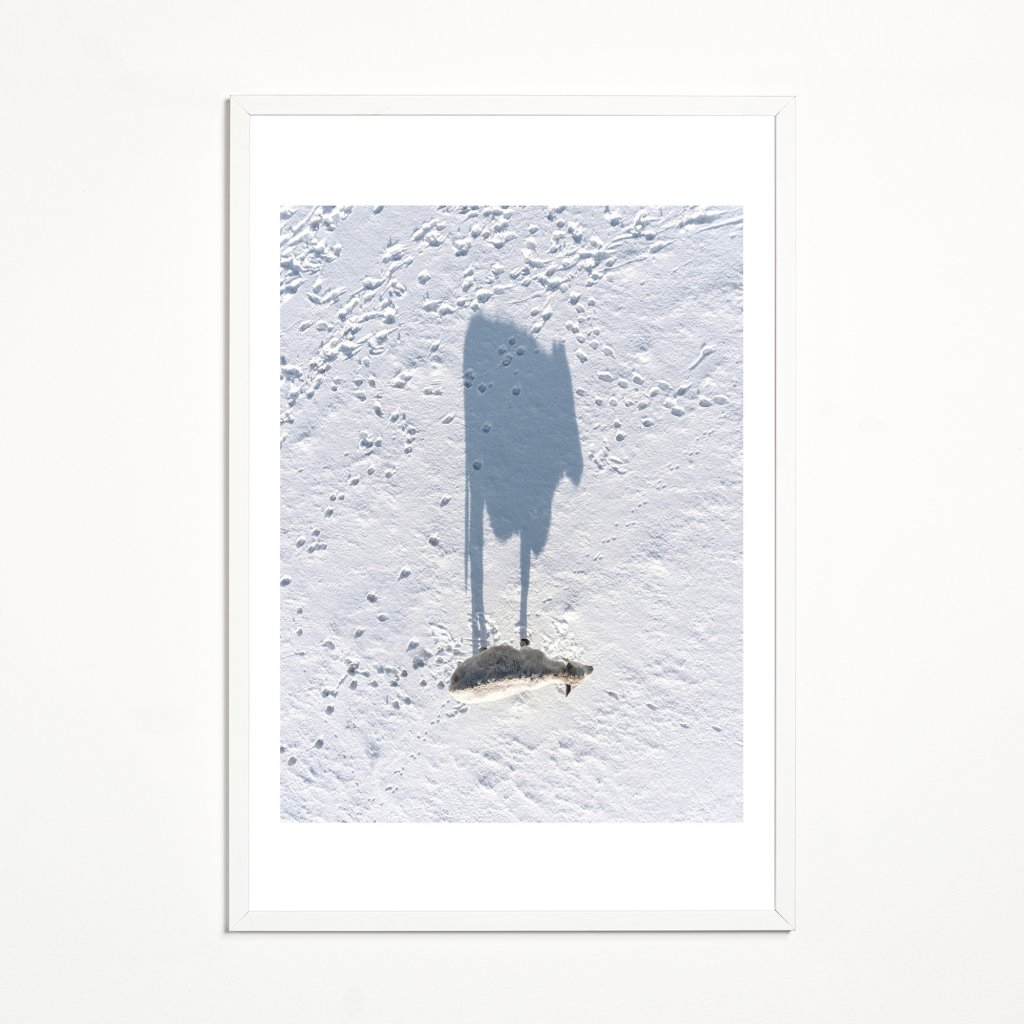 Na této fotce pracuje autor s jednoduchostí a symbolikou – bílá plocha sněhu, výrazný stín a stojící zvíře vytvářejí tichý zimní okamžik. Kompozice nechává prostor fantazii – jsou okolní stopy od stáda, nebo je zvíře úplně samo? Dílo působí jemně a autenticky, bez zbytečné dramatičnosti. Skvěle zapadne do interiérů, které hledají klid, emoci a nenápadnou hloubku.