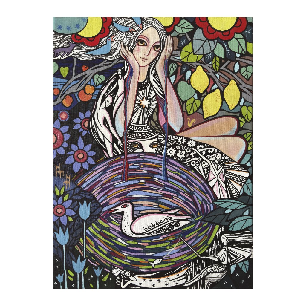 Obraz zkoumá, jak se člověk stává součástí vlastních návyků. Postava ženy je obklopena vírem barev, symbolickým hnízdem, v němž spočívá bílý pták. Návyk zde není jen automatický vzorec chování, ale i struktura, která poskytuje bezpečí, avšak zároveň uzavírá do kruhu opakování. Dílo spojuje dekorativní pestrost s tichým napětím vnitřního života.
